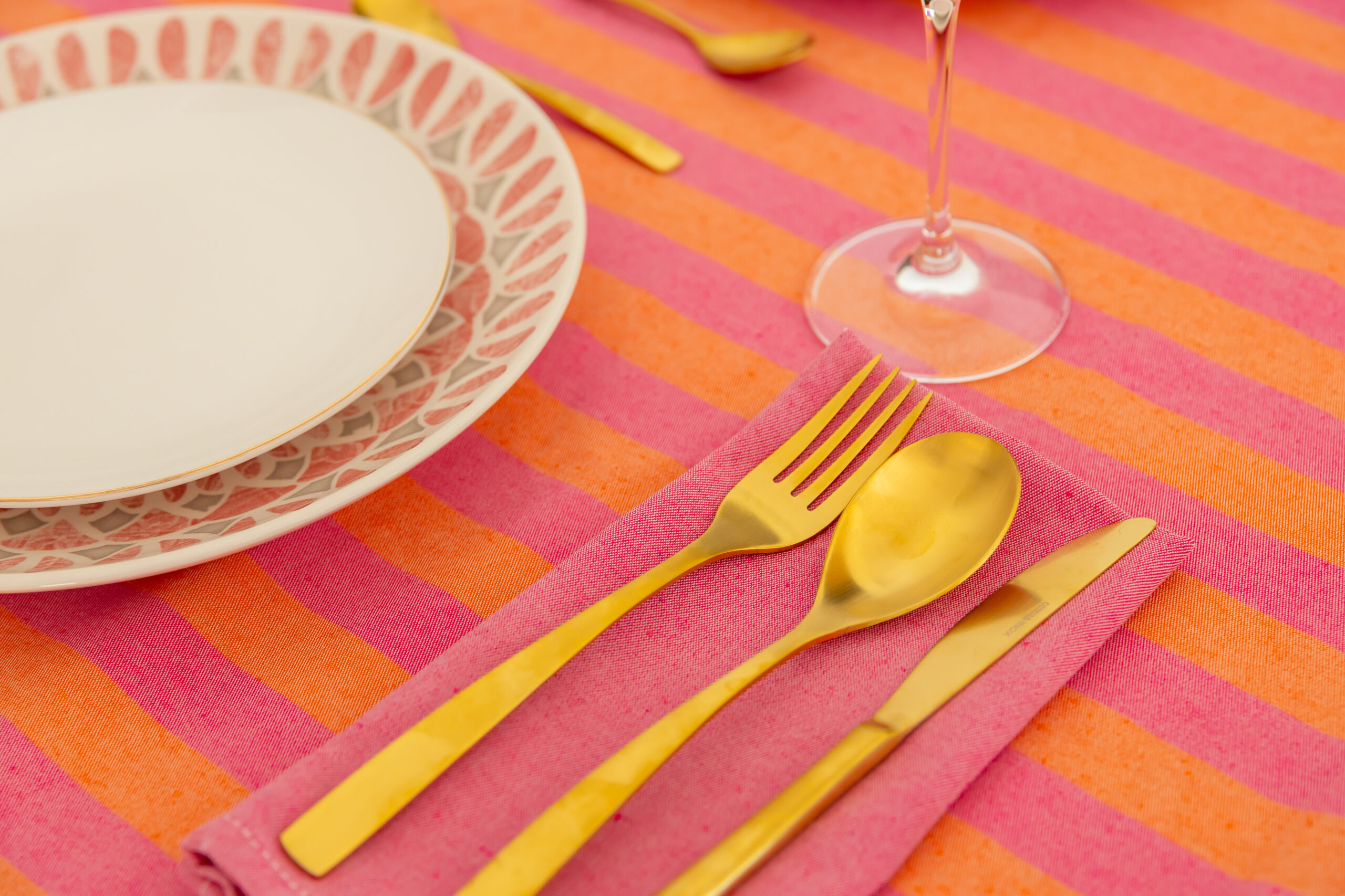 El set de cubiertos Dorado Siena destaca por su elegante acabado en tono dorado satinado, un color sofisticado y luminoso que aporta distinción y estilo a cualquier mesa. Su diseño estilizado y equilibrado combina estética contemporánea con un aire atemporal, convirtiéndolos en el complemento perfecto para mesas modernas o de inspiración mediterránea.