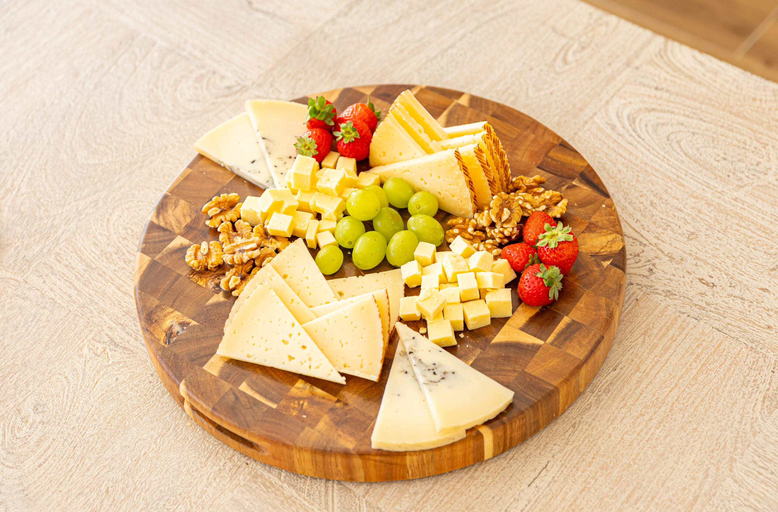 La Tabla Milano es una pieza pensada para acompañar los pequeños momentos que hacen especial el día a día. Su diseño redondo y su acabado en madera natural aportan calidez y equilibrio a la mesa, convirtiéndola en el soporte ideal para presentar quesos, embutidos o cualquier aperitivo.